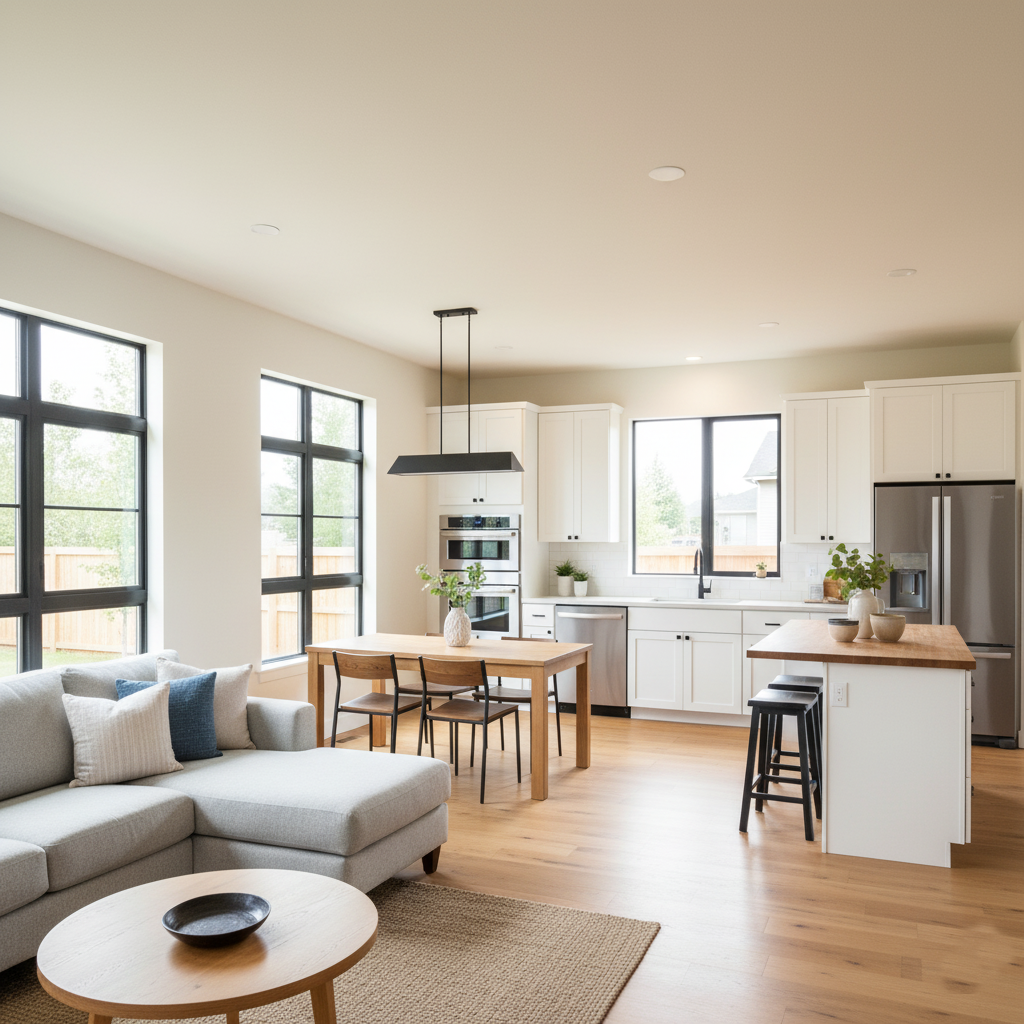 Entryway and Main Living Zone: As you enter the front door, you step directly into the open-concept living space. This is the heart of the home where daily activities happen.